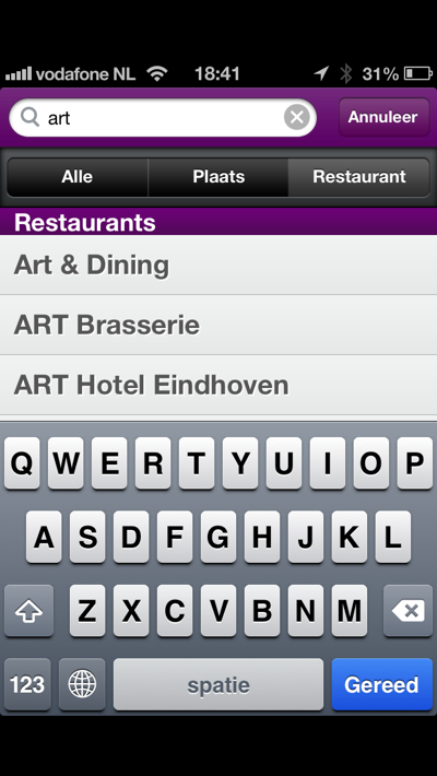 - De zoekfunctie in de app kan in meerdere plaatsen tegelijk zoeken.