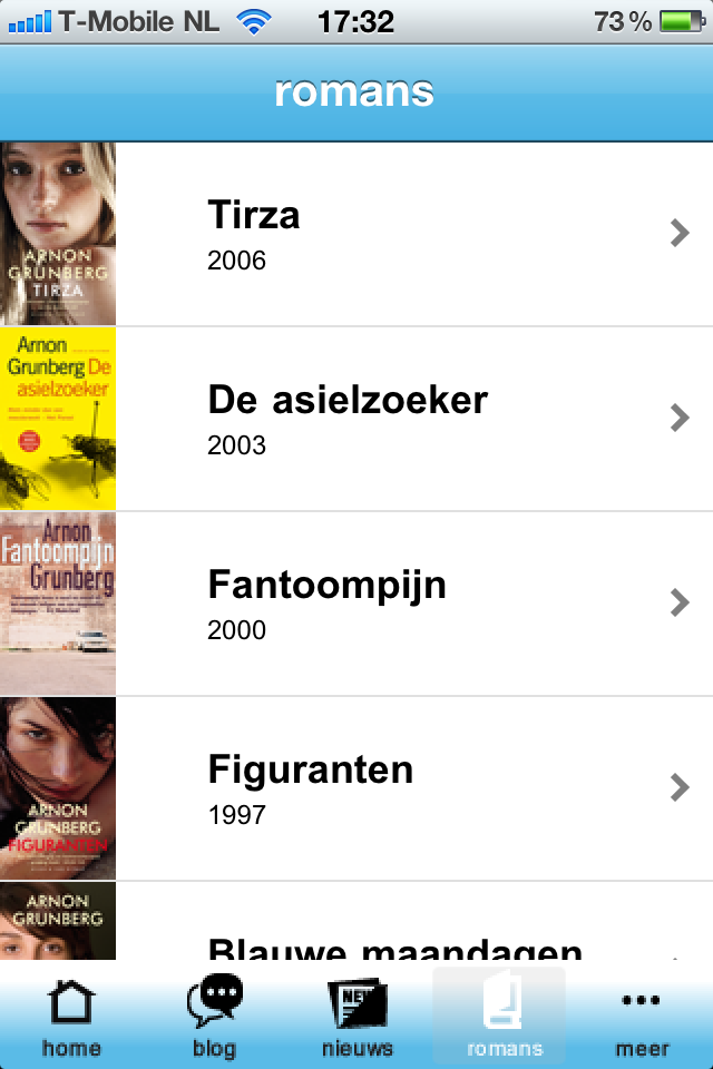Leuke app. Vooral die fragmenten maken me nieuwsgierig naar de roman en fijn dat ik de dagelijkse blog van Grunberg nu overal kan lezen.