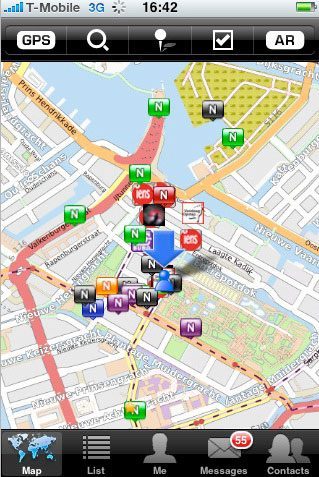 Net als in de gewone Nulaz-applicatie kun je een lijst met vrienden aanmaken, kijken of je vrienden in de buurt zijn, berichten sturen en een lijst met favoriete locaties aanmaken. Als je de kaart van Nulaz bekijkt, ziet die er bij de premium-versie hetzelfde uit, maar met een extra knop AR rechtsboven.