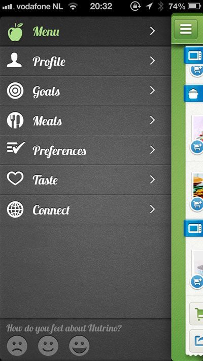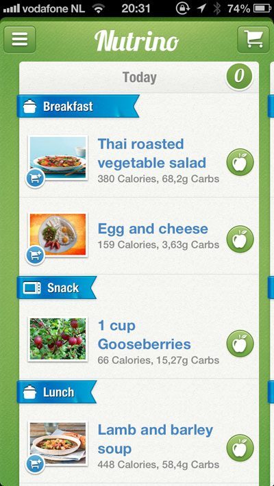 Nutrino is een nieuwe iPhone-app, die je helpt om gezonder te eten. De ‘voedingsdeskundige in een app’ kijkt eerst wat je gegevens zijn en wat je wilt bereiken, vervolgens geef je aan wat voor jou de belangrijkste maaltijden zijn en vul je in hoe je gewoonlijk je maaltijd samenstelt. Je kunt ook nog aangeven of je vegetariër/veganist bent of bepaalde allergieën hebt en Nutrino houdt er rekening mee. Nutrino is niet direct een dieetapp, maar je kan het wel op die manier gebruiken. De app is grotendeels Nederlandstalig maar bepaalde delen werken nog niet, zoals afhaalmaaltijden en buiten de deur eten. Je kunt je afvragen of Nutrino dat voor allerlei landen gaat ondersteunen. De app is gratis en bevindt zich in betafase. Toch ziet Nutrino er al mooi uit en werkt prima – als je genoegen neemt met Engelstalige recepten.