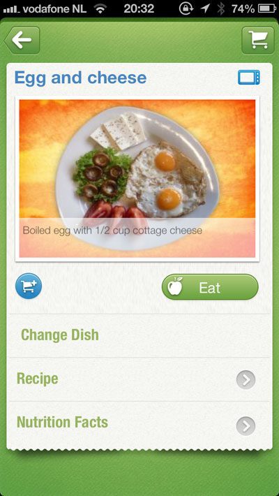 - Voorbeeld van een ontbijt. Je kunt ook iets anders kiezen of met Eat aangeven dat je het advies hebt opgevolgd.