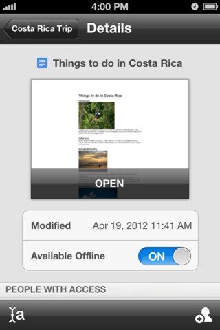 Met Google Drive voor iOS kun je niet alleen bestanden van je Google Drive-account openen en weergeven, maar deze ook opslaan voor offline gebruik. Handig voor die momenten dat je geen internetverbinding beschikbaar hebt. Daarnaast kun je vanuit de app bestanden openen met andere software die je op je iOS-apparaat hebt geïnstalleerd, bijvoorbeeld een doc-bestand (Word) met Pages of GoodReader. Ook kun je eenvoudig bestanden delen met vrienden, bijvoorbeeld de foto’s van je gezamenlijke vakantie.