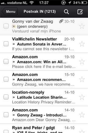 Als ze nou even zo slim waren geweest om een optie in te bouwen dat je eerst een wachtwoord of toegangscode moet intypen voordat je mailbox opent, dan had het écht toegevoegde waarde gehad. Nu kan namelijk iedereen die je iPhone of iPad in handen krijgt ongegeneerd je mail lezen, onbegrijpelijk dat Apple na al die jaren nog steeds geen simpel toegangscode-optie erop heeft zitten… En dat Google dat dan ook niet even inbouwt raakt natuurlijk kant noch wal.