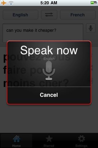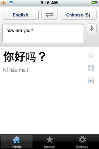 Met de gratis app voor de iPhone en iPod touch is het mogelijk om geschreven tekst in 57 talen, waaronder het Nederlands, te vertalen. Een andere mogelijkheid is het inspreken van tekst waarna deze wordt vertaald. Deze functie ondersteunt slechts 15 talen, waaronder Nederlands. In de lijst met talen wordt door middel van een grijs microfoontje aangegeven of het inspreken van tekst in die taal wordt ondersteund. Een wit microfoontje betekent dat deze niet wordt ondersteund. Ook is het voor 23 talen, waaronder Nederlands en Engels, mogelijk om de vertaling door de applicatie te laten uitspreken. Ondersteunde talen worden in dit geval weergegeven door een grijs luidsprekertje.