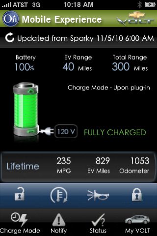 Op de CES wordt dit jaar ook de 2011 Volt gepresenteerd: een innovatieve elektrische auto van Chevrolet die tezamen komt met een eigen applicatie voor het Android, iPhone en Blackberry. Met deze app kun je een flink aantal functies van de auto uitlezen en bedienen vanuit je luie stoel. Zo kun je kijken wanneer de auto volledig opgeladen is, de boel alvast voorverwarmen, de deur openen en je rijstatistieken bekijken.