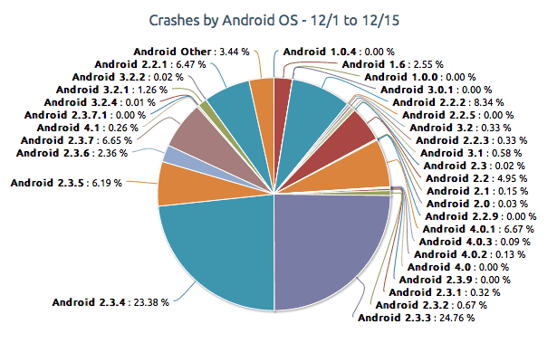 - Crashes per Android-versie