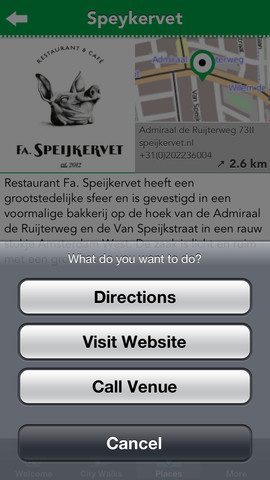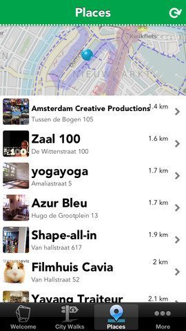 Als jarenlang bewoner van de voormalige stadsdelen Bos en Lommer, De Baarsjes en Oud-West (allemaal opgeslokt door het gigantische nieuwe stadsdeel Amsterdam West) zijn er nog genoeg plekken die ik nog niet ken. Ik zat wel te wachten op een dergelijke app, maar de toegankelijkheid van de informatie zou nog iets beter kunnen. Bij het opstarten krijg je een (altijd hetzelfde) welkomstscherm te zien. Daarna volgen de audiotours die je moet downloaden om te kunnen gebruiken en zelfs voor de locaties moet je eerst een fors bestand downloaden. Thuis op mijn 30Mbps Wi-Fi-netwerk duurde dat meer dan twee minuten en dat zal voor veel gebruikers reden zijn om af te haken. Bovendien kreeg ik driemaal een downloadfout en moest ik opnieuw beginnen. Niet erg als je thuiszit en nog wel wat anders te doen hebt, maar onacceptabel als je onderweg op straat loopt en via je 3G-bundel een flink downloadbestand van onbekende omvang moet binnenhalen (je ziet niet hoe groot het downloadbestand is, maar gezien de tijdsduur zal het een paar honderd MB’s zijn). De makers hadden beter kunnen zorgen voor een app die bij het opstarten al wat informatie laat zien. Nulaz en Waarheen? deden dat vier jaar geleden al, zelfs met extra’s als augmented reality. Zo moeilijk moet het niet zijn om een kaartje te tonen met een lijst van interessante bedrijven in de buurt, op basis van je locatie.