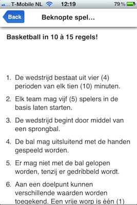 Er is een downloadknop in Play it Right om spelregels mee te downloaden, maar deze verwijst enkel naar een PDF-bestand op de bijbehorende sportsite. Dit betekent dat je de PDF open moet laten staan in de browser van je iPhone, of dat je hem in een app zoals GoodReader moet downloaden.