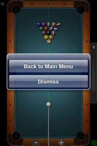Ben je dan uiteindelijk op het speelveld beland, dan zijn er twee nieuwe functies te zien: onderaan zie je een plus- en minteken waarmee je de richting van de keu subtiel kunt aanpassen. En linksboven is een pijltje te zien waarmee je tijdens het spelen weer even terug kunt naar het hoofdmenu. Daarbij wordt het spel niet afgebroken. De volgende verbetering is dat het spel een autosave-functie heeft gekregen: als je het spel moet sluiten en later terugkomt kun je met Load Last Game weer verder gaan waar je was gebleven.