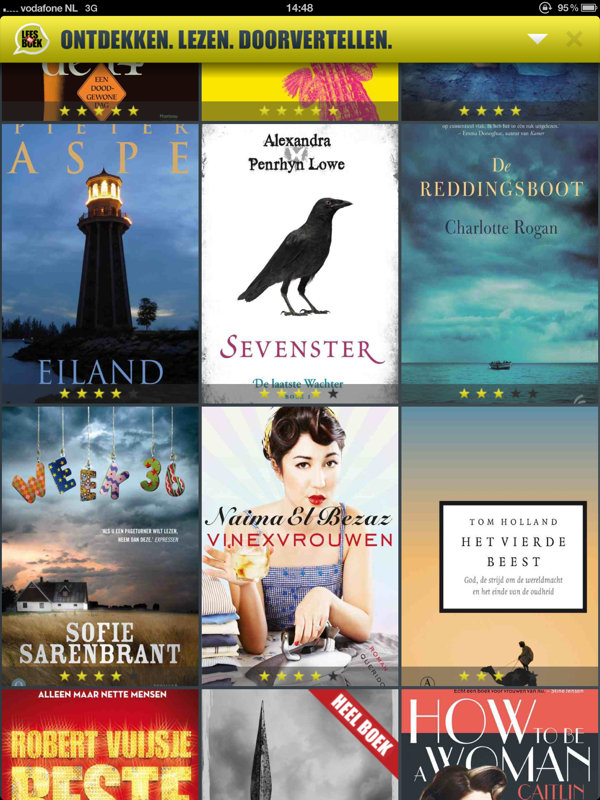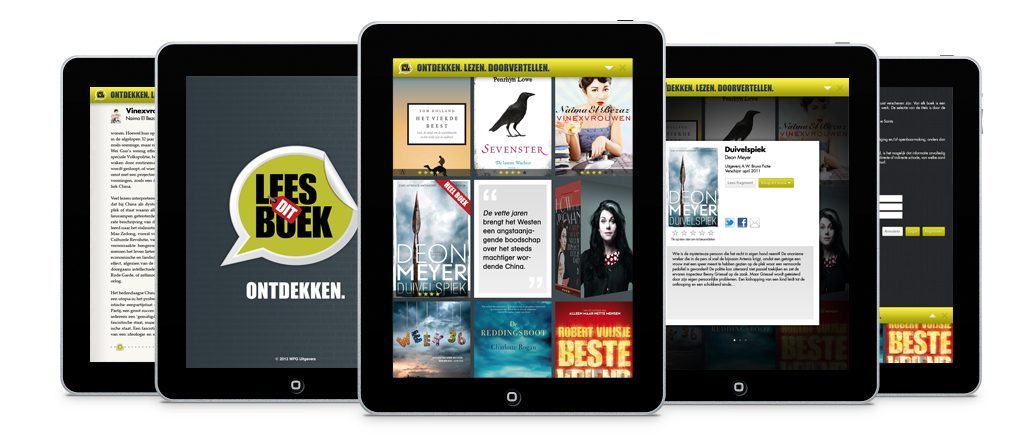 Lees dit boekDe iPad is een ideaal apparaat voor het lezen van e-books, maar welke moet je nu downloaden? Een groot aantal uitgeverijen (21 om precies te zijn, allemaal onderdeel van WPG) hebben daar wat op bedacht: de app ‘Lees dit boek’. Het is eigenlijk een digitale etalage, waarin een selectie van boeken te vinden is, waarvan je ook meteen een deel kan lezen.