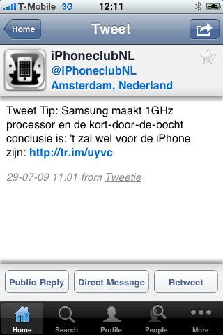 @Milton: Rustig en denk om je bloeddruk, morgen wordt het nog warmer. Dit is mijn ervaring met dit programma. Het werkt goed en lekker simpel zonder allemaal poeha eromheen. Doet wat het moet doen. Dat het programma misschien ietwat duurder is dan alle andere apps zal (voor mij) een zorg zijn… Die €2,- of €3,- extra zal ik echt niet in mijn portemonnee voelen. Het feit dat Twitter nu net de API veranderd waarvoor deze app bedoeld is gaat natuurlijk buiten de ontwikkelaar om, hoevaak heeft de app “Trein” of “Belstatus” niet eruit gelegen omdat de NS of T-Mobile weer een update had doorgevoerd in hun systeem. De ontwikkelaar heeft de fout dezelfde dag nog gevonden en opgelost, het is gewoon jammer dat het allemaal zo lang duurt bij Apple. Iedereen die een mail heeft gestuurd naar hem om het probleem te melden heeft de mogelijkheid gehad om de nieuwste versie 1.1.0 te krijgen omdat iedereen anders zolang moest wachten. Hij meldde ook dat niet iedereen hierin gëintresseerd was. Waarom een 9? Misschien ben ik iets te enthausiast geweest en wist ik niet dat iedereen zo kritisch was, maar dat is volgens mij niet de strekking van deze preview. Het gaat meer om het verhaal dan om het cijfer. Sorry als ik je hiermee verbaasd heb. En waarom zou er op Iphoneclub alleen maar re-previews mogen staan van Games? Volgens mij zijn er meer applicaties in de appstore dan Games. (Ik heb meer niet-games dan wel-games op mijn I-Phone staan in ieder geval.