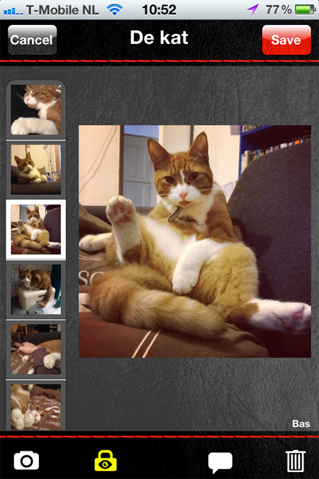 - Links staan alle toegevoegde foto’s, rechts je geselecteerde kiekje.