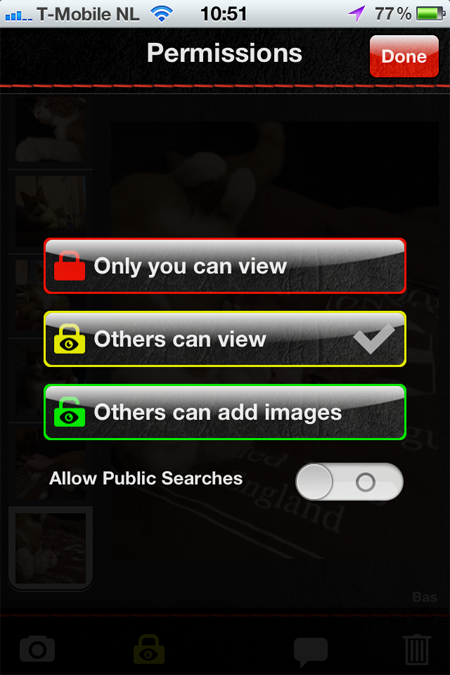 - Je kunt bij ieder album aangeven hoeveel rechten anderen hebben.