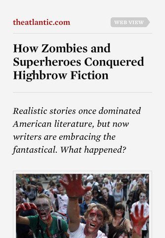 De iPhone-app heeft een instelling voor vijf lettertypes, waarbij standaard voor het klassieke Mercury wordt gekozen. De applicatie laat je verder kiezen uit een ander klassiek lettertype, een wat hoekige en twee moderne. Een artikel begint met een kop, toont dan een afbeelding en dan start de tekst. De randen van het scherm zijn vrij van tekst gehouden, zodat er wat ademruimte is. Je kan de app ook in landscape-modus gebruiken. Tijdens het lezen van een artikel, open je met een tik een menubalk. Daaruit kan je direct een artikel favorieten, archiveren, weggooien en delen.