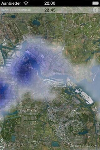 De Nederlander Jeroen de Leeuw heeft een nieuwe iPhone-applicatie uitgebracht die de gegevens van Buienradar een handige draai geeft. ‘Regen’ laat de geanimeerde weerkaart van de populaire website en applicatie namelijk zien op een kaart van Google Maps. Daardoor kun je inzoomen tot de voordeur en de regenkaart in satelliet- of kaartweergave zien. De applicatie is gratis uit de App Store te downloaden.