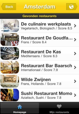 Wat dan opvalt, is dat de pagina van een restaurant een algemene beschrijving mist! Een foto komt in beeld, met daaronder adres- en contactgegevens, geopende dagen (handig) en een link naar de website. Daartussen staan de sterrenwaarderingen die gebruikers aan het restaurant hebben gegeven en is er een knop om de recensies van een restaurant door te nemen. Als je geluk hebt staat er ‘de zalmsalade is erg lekker’, als je pech hebt, weet je nog steeds niets over de specialiteiten van het restaurant anders dan een één-woordige omschrijving van de keuken. Bovendien krijg je een foutmelding als je de website van een restaurant bezoekt vanuit de app, omdat CityLemon overal een %20 achter plakt. Die moet je eerst handmatig weghalen uit het adres om alsnog bij de site te komen. Het is allemaal ietwat klungelig voor een restaurantgids die zich toelegt op bijzondere eettenten.