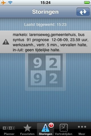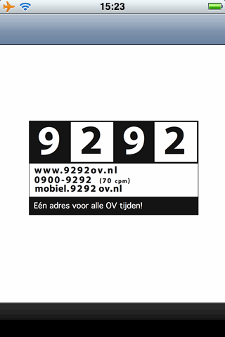 Voordat iedereen dat verkeerd begrijpt: de vertrek- en aankomsttijden zitten er wel degelijk in (zoals ze vermeld staan op de haltelijst). Wat er nog niet in zit, zijn de actuele vertrek- en aankomsttijden. Dat komt pas in een update als 9292 die informatie van alle aangesloten vervoersbedrijven krijgt. De vertrektijden die je nu krijgt zijn dus bij benadering, net zoals op de haltevertrekstaat.