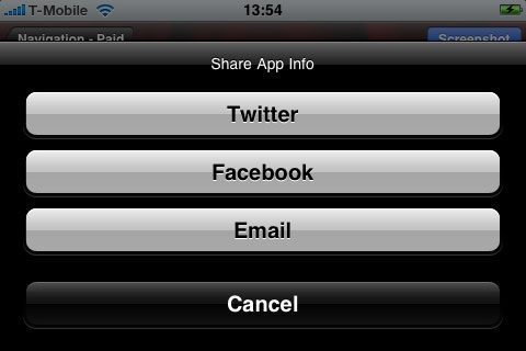 - Je kunt gevonden applicaties uitwisselen via Twitter, Facebook of e-mail.