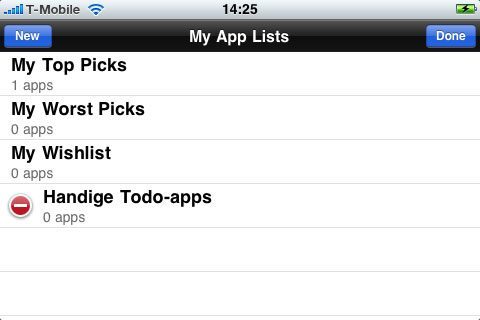 Voor de weergave van applicaties heeft App Popular gekozen voor een soort coverflow-weergave. Dat is weer eens wat anders, maar persoonlijk vind ik de bediening niet zo prettig: in plaats van te swipen moet je namelijk gewoon tappen om naar de volgende app te gaan. De weergave is ook alleen in landscape te gebruiken. Na het kiezen van het gewenste land (Nederland) krijg je de Engelstalige categorieën uit de App Store te zien. Tik je bijvoorbeeld op Medical, dan verschijnt er een extra knop waarmee je Free of Paid apps kunt selecteren. De applicatie toont vervolgens de top 100 in de betreffende categorie. Gevonden applicaties kun je toevoegen aan je trackinglijst of aan je favorietenlijst. Die favorietenlijst bestaat eigenlijk uit drie delen: My Top Picks (de beste applicaties), My Worst Picks (miskopen) en My Wishlist (applicaties die je nog wilt kopen). Je kunt via de Edit-knop zelf nieuwe lijstjes aanmaken, bijvoorbeeld handige todo-apps, apps voor de vakantie of wat je maar wilt. Het is niet mogelijk om de lijstjes van anderen in te zien, behalve dan een algemeen overzicht met de 25 apps die door de complete App Popular-gebruikersgemeenschap als beste en slechtste zijn gemarkeerd.