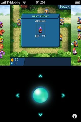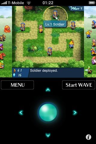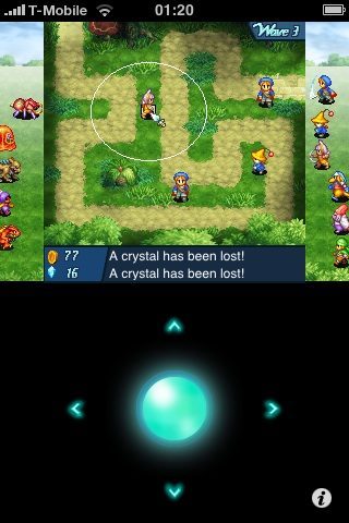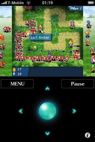 Leuk spelletje voor liefhebbers van Final Fantasy en tower defense-games. Deze game is dankzij de speciale beginnerswereld W1 ook geschikt voor mensen die het genre willen leren kennen. Je hoeft geen voorkennis van Final Fantasy te hebben om dit spelletje leuk te vinden. Maar het is jammer dat bijna de helft van het scherm in beslag wordt genomen door een primitief uitziende controlpad.