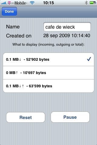 Sommige iPhone-gebruikers hebben geen onbeperkt internetabonnement en willen graag weten hoeveel ze downloaden en uploaden. Download Meter biedt daar een oplossing voor. Het meet al het internetverkeer dat via 3G/GPRS of via het Wi-Fi-kanaal is binnengehaald. Je kunt diverse tellers aanzetten, zodat je ook op verschillende locaties kunt meten. De applicatie werkt niet op de achtergrond, maar raadpleegt iedere keer de statistieken van het internetverkeer zodra de applicatie gestart wordt.