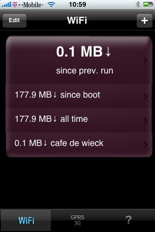 Met de drie tabs onderin het scherm kun je kiezen voor WiFi, 3G/GPRS of Hulp. In het Wi-Fi-scherm kun je het overzicht vinden van de tellers die alleen het WiFi-kanaal meten en in de 3G/gprs-sectie wordt alleen het verkeer via 3G/GPRS gemeten. Kom je er niet meer uit of wil je wat tips lezen, dan navigeer je naar de Hulp-tab.