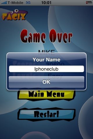 Als je het schuifspelletje in Aurora Feint kent, is ook meteen in één zin uitgelegd hoe de nieuwe game Facix Cubix gespeeld moet worden. De ontwikkelaar vroeg om eens naar deze game te kijken; had hij dat niet gedaan dat was de game misschien niet eens opgevallen tussen de honderden andere spelletjes van €0,79 die wekelijks in de App Store verschijnen. Gelukkig hebben ze nog wel een grappige extra functie toegevoegd: je kunt de spelstenen voorzien van eigen foto’s. Het spel werkt met vijf verschillend gekleurde stenen, dus je kunt maximaal vijf foto’s van vrienden of andere objecten in het spel gebruiken.