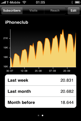 FeedCount is een handige applicatie om het aantal RSS-abonnees en views van websites bij te houden, maar voorwaarde is wel dat die websites hun data beschikbaar hebben gemaakt via de FeedBurner Awareness API. De makers hebben naast de betaalde versie van FeedCount (1,59 euro) ook een Lite-versie gemaakt. In de Lite-versie ontbreekt de mogelijkheid om meerdere RSS-feeds toe te voegen en worden er advertenties getoond. Persoonlijk gebruik ik vaker Ego dan FeedCount, maar er zijn vast mensen die de ‘ins en outs’ van hun RSS-abonnees ook onderweg bij willen houden. Dan is FeedCount de ideale applicatie om dat te doen.