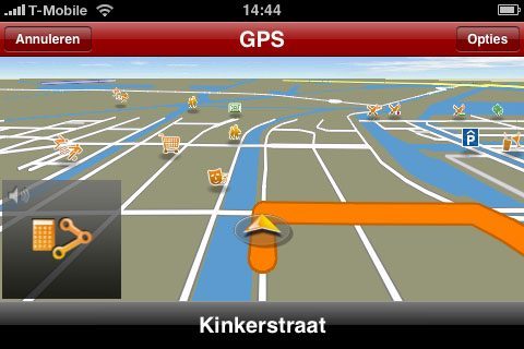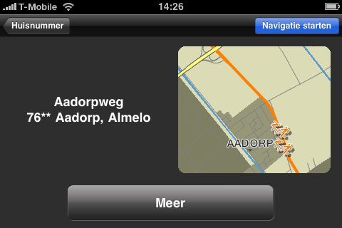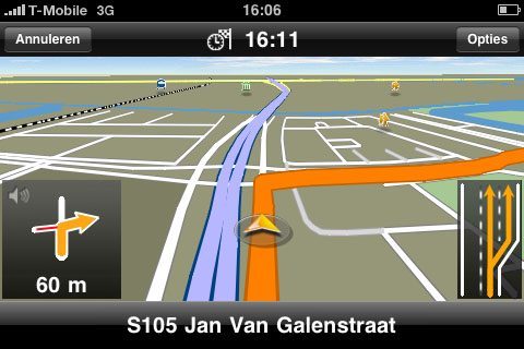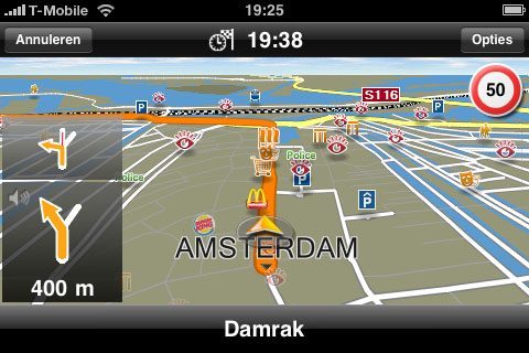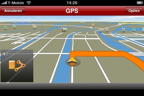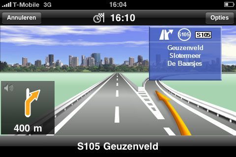 - Qua prestaties doet Navigon niet onder voor TomTom. Wel krijg je iets meer aanwijzingen en krijg je de aanwijzingen over het algemeen iets later. Maar ze zij duidelijk verstaanbaar en kloppen. Helaas kunnen we op dit moment geen vergelijking maken met TomTom voor de iPhone, maar TomTom kennende zal de interface er ongeveer net zo uitzien als op de TomTom Go (en de huidige smartphonesoftware).