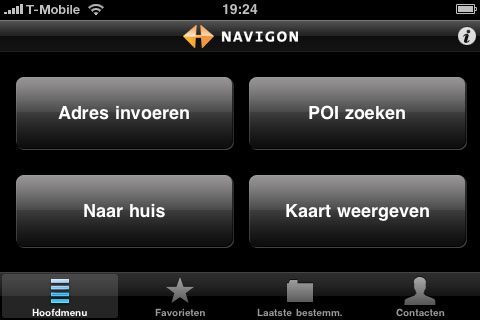 Interface van Navigon voor iPhone