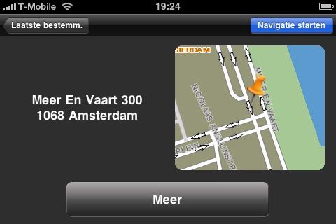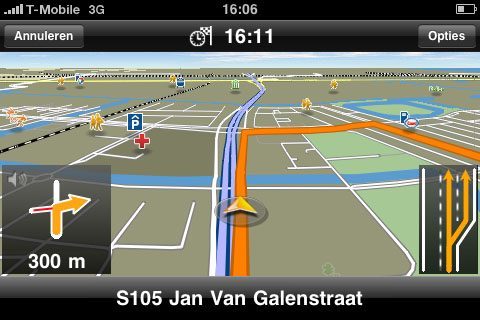 Iets anders wat ik mis in vergelijking met TomTom is file- en verkeersinformatie. Nu heeft de iPhone ook geen RDS aan boord, maar via de dataverbinding zou het toch gewoon mogelijk moeten zijn om die informatie op te vragen, net zoals TomTom doet (maar zij vragen er wel geld voor – iets dat ze bij de iPhone-versie met In App Purchases gaan oplossen?).