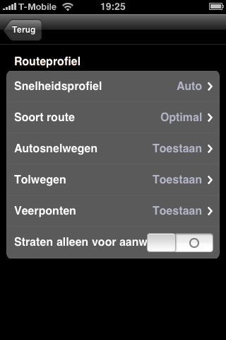 - Routeprofiel wijzigen: dit is hierboven al uitgelegd (snelwegen, tolwegen en dergelijke).