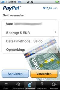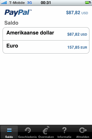 paypal op de iPhoneSinds een week of drie staat PayPal in de Nederlandse en Belgische App Store. Dat lijkt niet zo’n big deal, maar er zijn landen waar de app nog niet lokaal beschikbaar is (waaronder Duitsland). In dergelijke landen kun je wel PayMobile (€3,99) kopen, een applicatie van een externe ontwikkelaar waarmee je de saldo’s van meerdere PayPal-accounts in de gaten kunt houden. Omdat PayPal-accounts vaak aan bankrekeningen en creditcards zijn gekoppeld lijkt het mij niet zo veilig om in te loggen bij een server in Montenegro (paymobile.me is de bijbehorende website). Vandaar dat het mooi is dat er nu een officiële applicatie van PayPal beschikbaar is. Dan weet je tenminste zeker dat je rechtstreeks bij de servers van PayPal inlogt. Als je geld hebt geleend of tijdens een etentje de kosten hebt gedeeld kun je meteen terugbetalen.