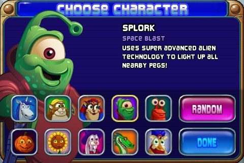 De groene balletjes geven je de speciale functie van degene met wie je speelt. Het paard geeft je het nauwkeuriger richten, de alien geeft je multiball en daarna komen er nog veel meer. Bij 1 krijg je flippers als in een flipperkast, bij 1 haalt hij vast een flink aantal oranje ballen weg, etc.