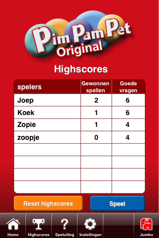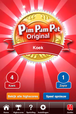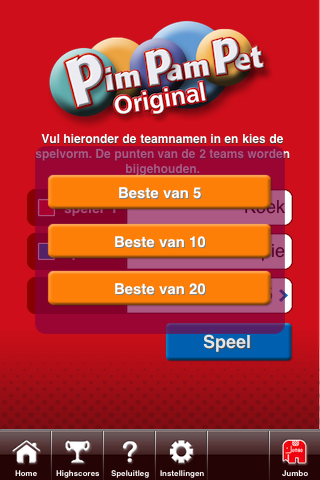 PimPamPet voor de iPhone en iPod touch is leuk, vlot aangekleed. Onderin beeld staat een overzichtelijke menubalk met de knoppen Home, Highscores, Speluitleg en Instellingen (je kan het spel ook op Engels en Duits zetten). Bij de highscores worden de scores van verschillende teams en spelers bijgehouden aan de hand van de namen die ze van tevoren hebben aangegeven als er een potje wordt gespeeld. Een wedstrijd mag 5, 10 of 20 rondes bevatten. Wie als eerst de meerderheid haalt wint, maar het spel wordt gewoon afgemaakt als team Kinders al 11 punten heeft en team Zwijgende Woede nog op de nul staat. Na afloop van een potje staat de naam van de winnaar bovenin beeld en draait het liedje van Please Sir (Of Uhhh, vergeet je tandenborstel niet). En de ouders waren al zo vrolijk…