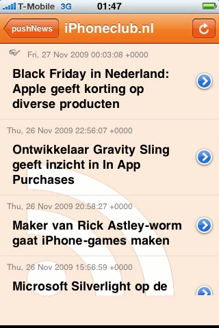 Als RSS-lezer voor de iPhone valt Push News een beetje tegen en ook de push notificaties zijn niet altijd even snel, in vergelijking met applicaties die een andere aanpak hanteren (zoals het waarschuwen wanneer er iets op de website wijzigt). De applicatie ziet er ook wat amateuristisch uit, met bijvoorbeeld Italiaanse (onvertaalde) teksten op knoppen. Gelukkig is de applicatie gratis, dus even proberen kan zonder risico. Maar een topper vind ik het niet.