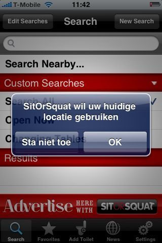 Heb deze heb gister van me iPhone afgegooid, leuke app maar ik gebruikte hem nooit. Meestal weet ik wel een WC te vinden, daar heb ik geen iPhone voor nodig.