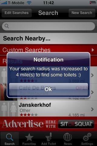SitOrSquat maakt het je erg makkelijk wanneer je op zoek bent naar een toilet in het openbaar. De gebruikersinterface is erg goed ontworpen en alle functionaliteiten werken goed. Het enige minpunt van de applicatie is dat je je moet registreren als je van alle mogelijkheden gebruik wilt maken, maar gelukkig is het registreren niet noodzakelijk om alleen op toiletten te kunnen zoeken. SitOrSquat maakte onlangs bekend dat ze de applicatie nog verder gaan uitbreiden en verbeteren. Kortom: altijd handig om de gratis SitOrSquat-app alvast op je iPhone te hebben voor noodgevallen.