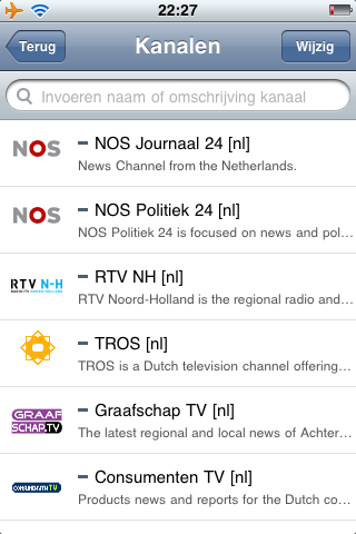 SPB TV is een applicatie die je sinds een paar dagen in de App Store kunt downloaden. Deze applicatie bevat 100 internetzenders, waaronder een aantal Nederlandse zenders zoals NOS Journaal 24, Graafschap TV, Consumenten TV, RTV NH, Politiek 24 en Sterren 24 (een themakanaal van de TROS). Geen volledig aanbod dus, maar je kunt er wel degelijk kijken naar interessante zenders.