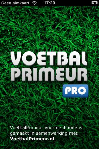 - Het splashscreen van Voetbalprimeur Pro.