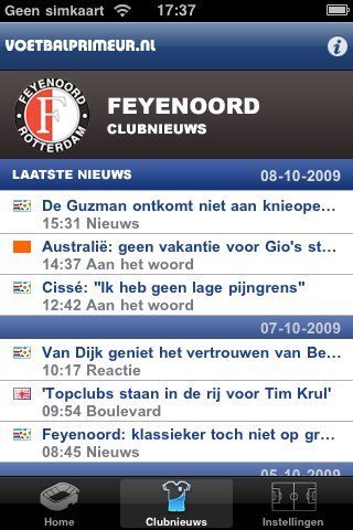 - Nieuws over je favoriete club (instelbaar).