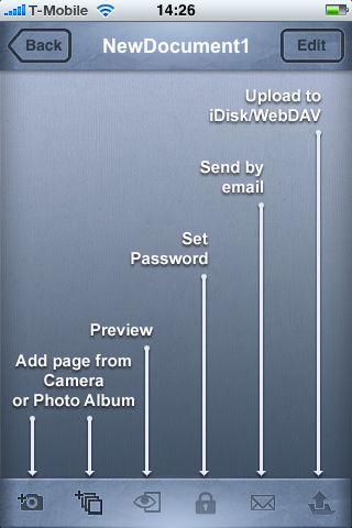 Met de applicatie Scanner Pro kun je documenten inscannen en deze vervolgens als PDF versturen via e-mail of opslaan op je iDisk. Ook kun je met je desktop computer via wifi de ingescande documenten op je iPhone via de ingebouwde server bereiken.