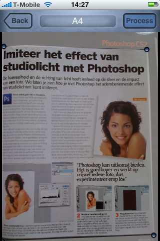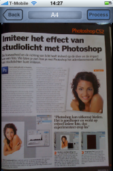 Of het nou erg nuttig is om je iPhone als scanner te gebruiken valt te bezien. Misschien als je onderweg in de trein een bepaald artikel uit een tijdschrift naar iemand wilt sturen of wanneer je zelf geen scanner hebt thuis. De kwaliteit van de documenten is matig te noemen, en het vergt wel wat geduld om de foto’s van een artikel goed scherp te krijgen. Maar bij een scherpe foto van een A4, gemaakt met de iPhone 3G, is het PDF-bestand aardig leesbaar op een desktopcomputer. Je kunt eventueel met behulp van OCR-software het document daarna nog omzetten in bewerkbare tekst.
