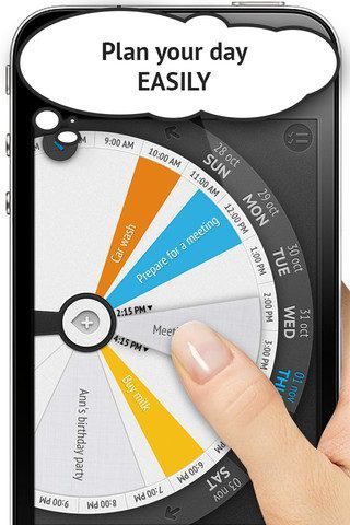 Sooner iPhone iPod touch takenlijst agenda draaischijfDrag en drop en een tijd instellen op een draaischijf in plaats van door twee tijdstippen in te voeren. Sooner is een taken-app voor de iPhone en iPod touch die inspeelt op intuïtie. Door de app te koppelen aan je iOS-agenda, verandert de applicatie van een takenlijst in een agenda met reminder- en herhalingsfunctie. Je kan de aankomende taken in een lijst zien, maar ook toewijzen aan draaischijven waar je afspraken en taken op kan verslepen en op vergroten en verkleinen.