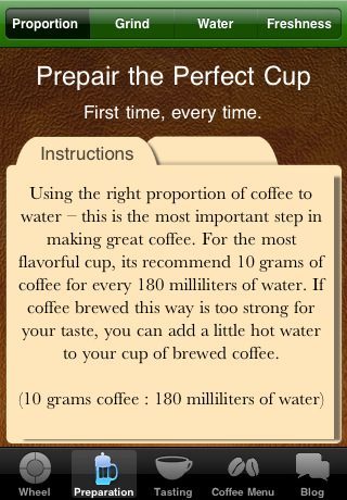 De nieuwe applicatie Starbucks Pocket Coffee Master is niet gemaakt door of in samenwerking van de grote koffieketen, maar is duidelijk ontworpen door een liefhebber. De iPhone-app kan je helpen met het vinden van de juiste koffiesmaak bij een tussendoortje en legt je uit hoe je een ideale kop koffie maakt. Met Starbucks Pocket Coffee Master kun je zelfs de oorsprong van talloze koffie-ingrediënten nalezen. Als je niet zo diep op de stof wilt ingaan, is de ’tastes like’-optie misschien handig. Die laat zien welke smaken in de buurt komen van jouw favoriete bakkie pleur.