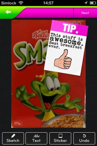 Dat Stiktu behalve leuk ook nuttig kan zijn, kan je je bijvoorbeeld bedenken bij filmposters en al zijn beschreven met beoordelingen van anderen. Het is een aardige bijkomstigheid van Stiktu, maar de app is vooral erg geinig. Wie maakt er iets leuks van het iPhoneclub-logo?