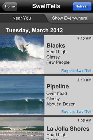 Waar kan je het beste surfen? De iPhone-app SwellTell laat je het weten aan de hand van foto's en informatie die de gebruikers zelf hebben geüpload.