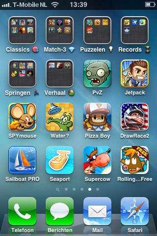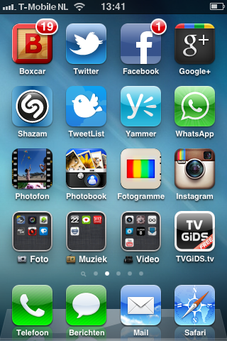 Ik heb 2 paginas, eerste pagina met apps die ik veel gebruik, 2e pagina met mapjes voor entertaintment, social, games etc. Dat vind ik al chaotisch haha