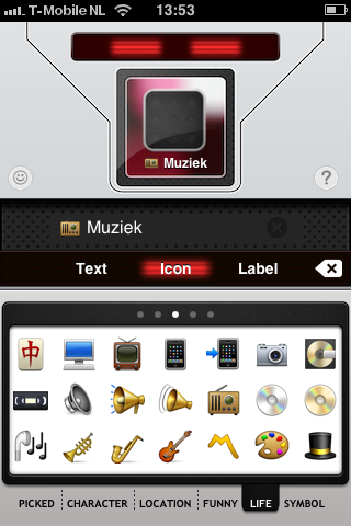 Het is niet zo dat je vanuit de – overigens zeer fraai afgewerkte – applicatie TagFolder meteen de namen van mappen kan aanpassen. De help-sectie onder het vraagteken laat al zien hoe je de app wél gebruikt. Nadat je de naam van een map hebt samengesteld, druk je op de map erboven. Daarmee wordt de naam die je hebt gemaakt, gekopieerd naar het klembord. Vervolgens kun je lang op een map op een homescreen drukken om de naam ervan te wijzigen. Je verwijdert de huidige naam, houdt het tekstveld ingedrukt, gebruikt de optie ‘Plak’ en ziedaar: de eigen mapnaam met logo staat bij de map. Zo kan de map met foto-apps voorzien worden van een camera, de map met reisgidsen van een vliegtuigje en games van een 8-ball, een stel kaarten of een dartboard. Er zijn genoeg opties.