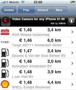 De datum waarop de laatste prijsinformatie is opgevraagd is redelijk recent (meestal minder dan een week). De prijs zal niet altijd tot op de cent kloppen, maar je krijgt wel een indruk of het tankstation duur of goedkoop is. TankZe is gratis te downloaden uit de App Store, maar is wel voorzien van een reclamebanner: op elk scherm komt een steeds wisselende banner bovenin het scherm in beeld.